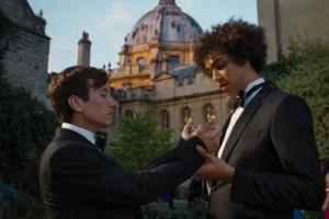 Saltburn introduces us to the unlikely friendship between Oliver Quick, a seemingly impoverished Oxford University student, and Felix Catton, a member of the affluent Catton family. Oliver develops a sort of crush on Felix, or that is what he portrays it to be. The picturesque estate of Saltburn becomes the backdrop for a tale that unfolds like a sinister game of chess, where Oliver’s moves become increasingly unpredictable.